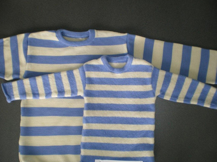 未经防毡缩整理的针织羊毛衫,洗前和洗后。
