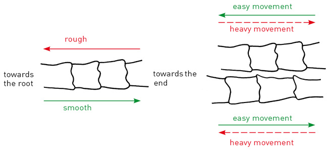 在热碱性水的影响下,羊毛纤维周围的鳞片会升竖起来。如果羊毛纤维移动,因为鳞片只能向一个方向滑移,纤维之间的楔就越来越多。羊毛织物就会收缩,变得更紧。